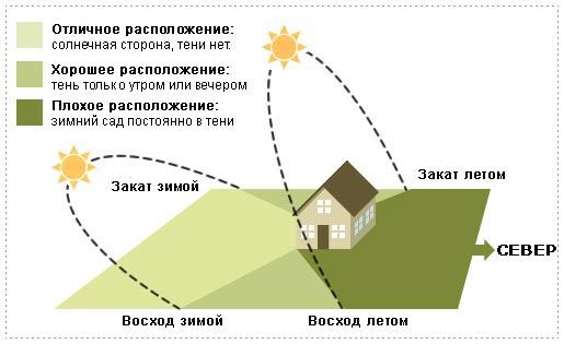 En règle générale, un jardin d'hiver est organisé dans une extension de la maison, et dans ce cas, il est très important de quel côté cette extension sera située: