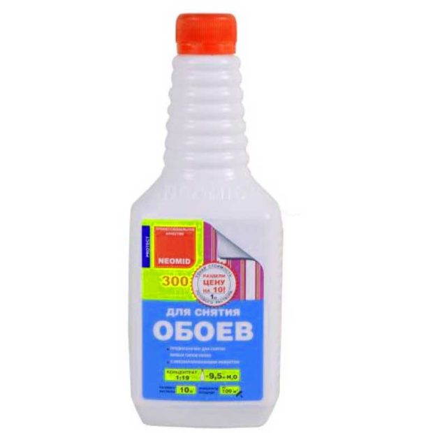 Si le papier peint est collé fermement, ou si vous ne voulez pas perdre de temps et d'énergie à les tremper dans l'eau, vous pouvez prendre une composition spéciale pour retirer le papier peint. Ces fonds sont peu coûteux, non toxiques, absorbés dans la structure du papier peint bien mieux que de l'eau ou du savon et de l'eau.
