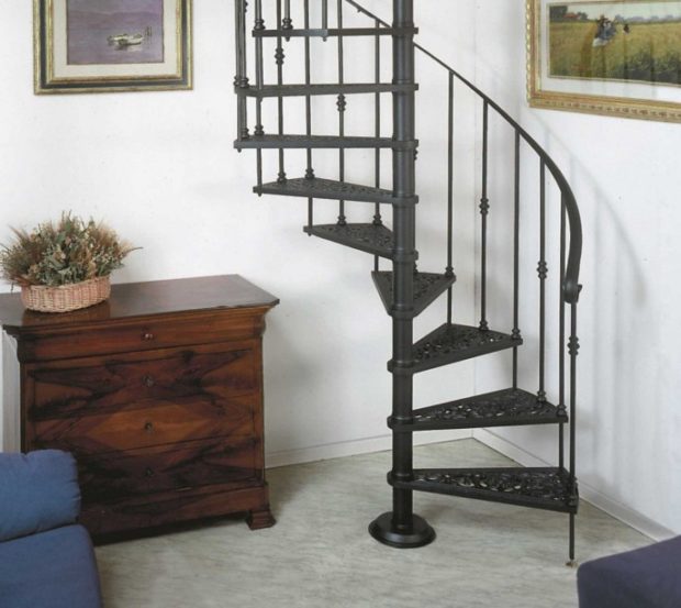 - escaliers en colimaçon suggèrent la présence d'une colonne de support autour de laquelle les marches sont disposées en spirale. Pour plus de commodité, il est inférieur aux autres types d'escaliers, mais il vous permet d'économiser beaucoup d'espace.