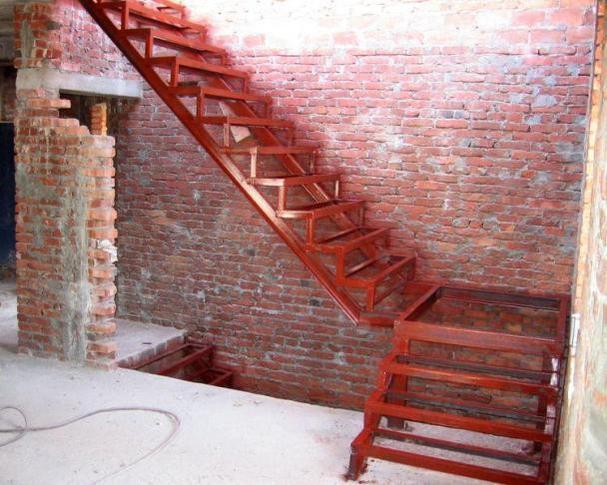 Comme poutres pour les escaliers, généralement prendre le canal 8-14, utilisent moins souvent un faisceau en I. Le tuyau peut également être utilisé, mais il est moins durable, il est généralement utilisé pour les escaliers qui ne seront pas gainés. Un coin est utilisé pour créer des marches. - pour les poutres, il ne convient pas en raison de sa faible résistance, mais il existe des cas où deux coins sont soudés. Pour créer les supports des étapes prendre taille d'angle 32 * 32, 35 * 35 ou 40 * 40.