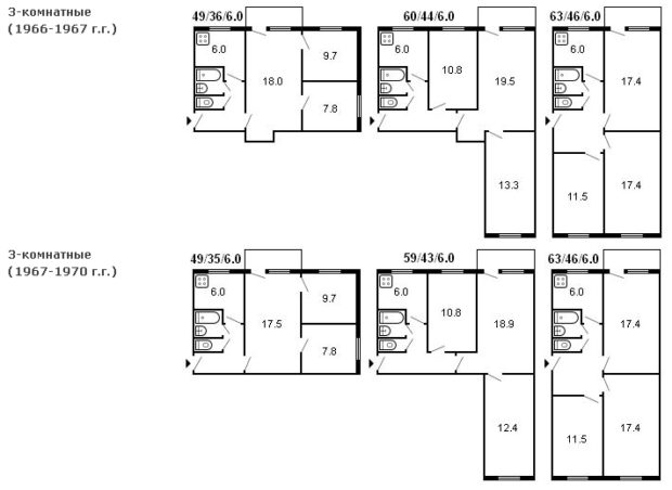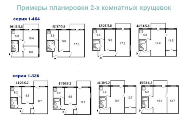 - à Khrouchtchev prévalent Appartements 1 et 2 pièces, moins commun 3 chambres. Dans les appartements 2 et 3 pièces point de contrôle;