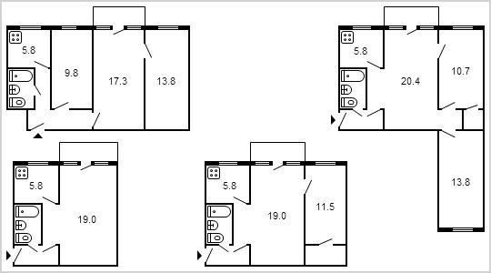 - la superficie des appartements est petite, hauteur de plafond 2,48-2,6 m, dans certaines séries - jusqu'à 2,7 m. Coin cuisine 4,6-7,1 m2 est devenu l'objet de milliers de blagues, ainsi qu'une salle de bain combinée d'une superficie d'environ 2 m2;
