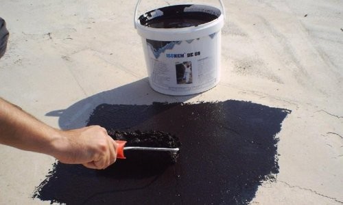 S'il n'y a pas de possibilité d'embaucher des spécialistes, vous pouvez essayer de tout faire manuellement. Certes, nous vous conseillons de faire le plein de temps et de patience à l'avance. L'imperméabilisation est appliquée après les travaux préparatoires. La surface doit être propre, rien ne doit en tomber. Dans ce cas, vous devez utiliser un mélange ciment-sable. La solution est appliquée avec une épaisseur de 3-4 mm. Lorsque le premier calque est défini, vous pouvez procéder à l'application du suivant. Après polymérisation complète, vous pouvez procéder à l'installation du matériau de toiture.
