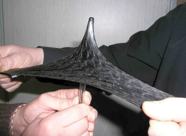 Le caoutchouc liquide est récemment apparu sur le marché des matériaux d'étanchéité, donc peu de gens savent de quoi est fait ce revêtement. Pour commencer, le matériau n'a rien à voir avec du caoutchouc ordinaire. Si le caoutchouc que nous connaissons tous est fabriqué à partir de caoutchouc, le caoutchouc liquide est un produit du traitement du bitume. Du latex et d'autres additifs modificateurs, stabilisants, polymères et eau y sont ajoutés. Le résultat est un système à deux composants, une émulsion, dont les propriétés lui permettent d'être utilisé pour une imperméabilisation de haute qualité. Avec du caoutchouc noir, il combine uniquement la couleur noire et la capacité de s'auto-réparer après des dommages mineurs, des perforations, des déformations - selon cet indicateur, le matériau contourne tous les homologues laminés traditionnels.