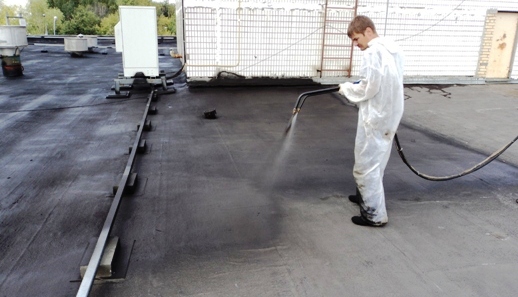 La méthode de pulvérisation est la mieux adaptée pour organiser l'étanchéité du toit - l'équipement est suffisamment mobile pour couvrir de manière transparente tous les éléments du toit, même les plus inaccessibles et convexes, avec un matériau. Il vaut mieux travailler par temps sec à une température de l'air supérieure à +50C. Il est préférable d'appliquer sur une surface sèche, mais une installation humide n'est pas interdite.