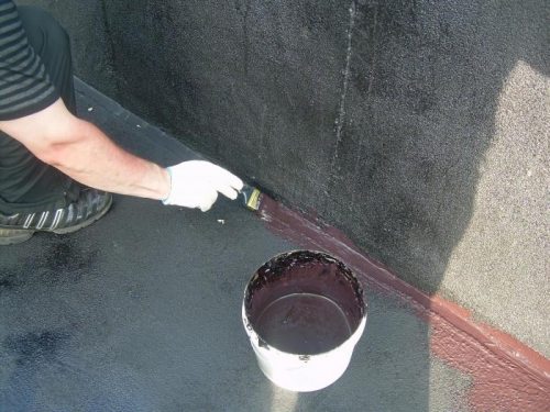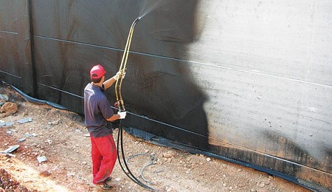 - il est préférable d'utiliser un mélange à deux composants qui est pulvérisé avec de l'équipement. Si la fondation est petite (par exemple, une grange ou un gazebo), vous pouvez appliquer des mélanges à un composant et une application manuelle. L'épaisseur minimale du revêtement est de 2 mm, mais cet indicateur dépend fortement de la profondeur de la fondation: jusqu'à 10 m une couche de 2-4 mm suffit, avec une profondeur de 10-20 m une couche de 4-6 mm est nécessaire;