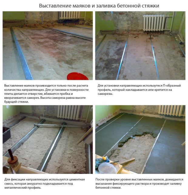 - la solution finie est appliquée en bandes, égalisées avec une règle ou une racle. L'emballage indiquera combien de temps vous devrez attendre pour pouvoir marcher sur la chape et équiper le revêtement. Les détails sont décrits dans la vidéo.