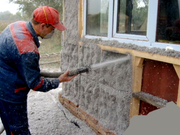 Ce sera plus facile quand en utilisant une installation spéciale. Le pas de la caisse est de 1-1,2 m, de l'eau est ajoutée à la laine de coton avant la pulvérisation pour former une masse adhésive. Le coton est pulvérisé avec une couche dense et uniforme, laissé sécher, puis l'excès est nettoyé, la membrane est montée et le travail commence.