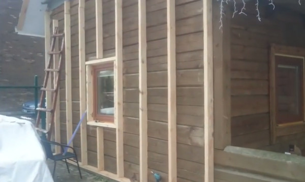 - installation du cadre. Les barres sont fixées par incréments de 10 mm de moins que la largeur de l'isolant. La première poutre est montée près du coin de la maison, à 5-10 cm de celle-ci. Fixez la caisse vis;