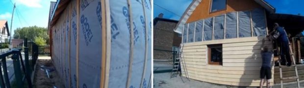 - installation d'un contre-treillis sur des vis autotaraudeuses, plus tard une doublure en bois y est fixée ou autre matériau de parement. Il s'agit d'une technique de façade ventilée.