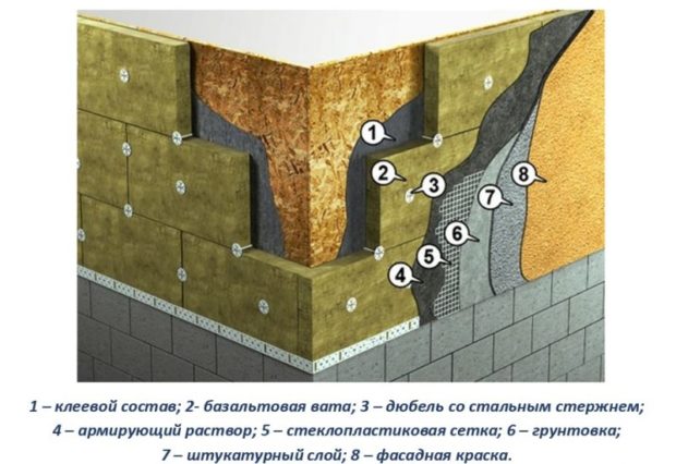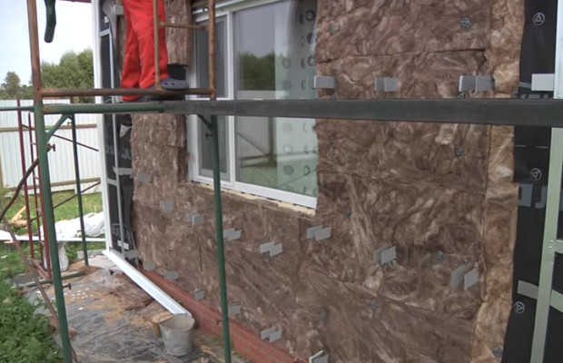 Une autre façon - coller des plaques de laine minérale sur le mur avec une fixation supplémentaire avec des chevilles. Ensuite, un mortier de ciment est appliqué pour le nivellement, il est renforcé avec une maille en fibre de verre. Il ne reste plus qu'à amorcer le mur, appliquer une couche plâtres et peintures (seulement pas de compositions acryliques). Il s'agit d'une méthode de façade humide.qui pas particulièrement adapté aux maisons en boisparce que le plâtre est une coquille statique et l'arbre est mobile. Des fissures peuvent se produire.