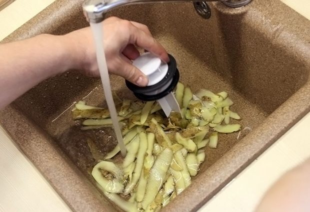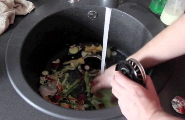 - lorsque vous avez fini de laver la vaisselle, attendez 1 à 2 minutes jusqu'à ce que le bruit cesse et que le broyage soit terminé, et éteignez l'appareil, et après quelques secondes - arrosez.