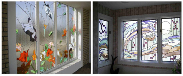 En plus des verres colorés presque transparents, il existe d'autres façons de décorer une fenêtre: