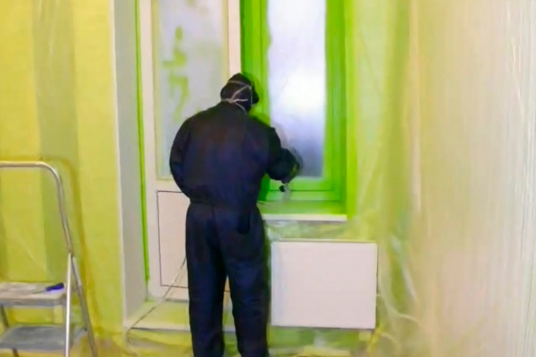 - Peinture au pistolet vous permet d'obtenir de nombreuses nuances intéressantes qui ne sont pas disponibles lors de l'utilisation de la méthode de laminage. Tout d'abord, le profil est soigneusement nettoyé, puis il est traité avec de la peinture à l'eau par pulvérisation sans air, et si nécessaire pour obtenir une couleur métallique, une deuxième couche de revêtement est appliquée. Il reste à attendre le séchage complet, après quoi le système est prêt pour l'installation dans l'appartement chez le client. Il n'y a pas seulement beaucoup d'options de couleur pour la coloration, mais beaucoup - une palette de plus de 2000 nuancesy compris les options brillantes, mates et métalliques. La technologie de peinture prend moins de temps et coûte moins cher que la stratification, et pendant le fonctionnement, le revêtement peut être facilement mis à jour. Cependant, les rayures et autres dommages sur un profil peint semblent plus faciles que sur un profil stratifié. La qualité de la peinture dépend fortement de la compétence de l'artiste. Vous ne pourrez pas obtenir une texture - seulement une surface de couleur unie, mais dans de nombreux cas, cela suffit.
