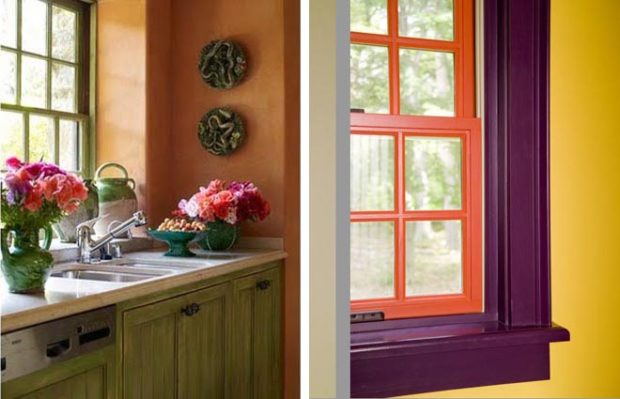 - jeu en contraste - Il s'agit d'un risque qui peut conduire à un succès complet ou, à l'inverse, livrer une déception complète. Comme dans le cas de la façade, vous devez choisir une teinte pour qu'elle soit contrastée, mais en même temps en harmonie avec l'intérieur. Concentrez-vous sur la combinaison de couleurs dans la roue chromatique;