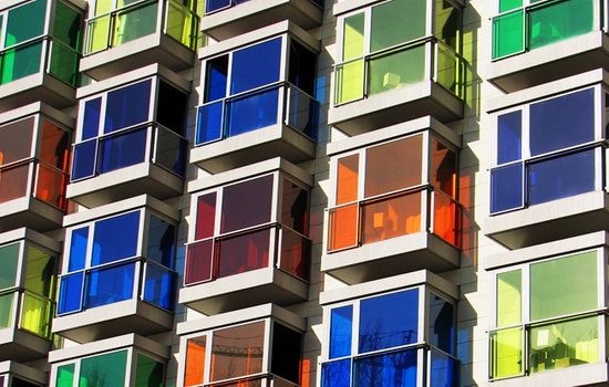 - utiliser des verres miroir, qui reflètent une partie des rayons du soleil, vous permettent d'économiser sur la climatisation et de protéger l'espace de vie des regards indiscrets. La teinte miroir peut être de différentes nuances. Pour une maison privée, il est préférable de choisir des teintes brunes, dorées, vertes ou bleues, et pour un immeuble commercial de style moderne - verres gris ou bronze;