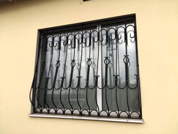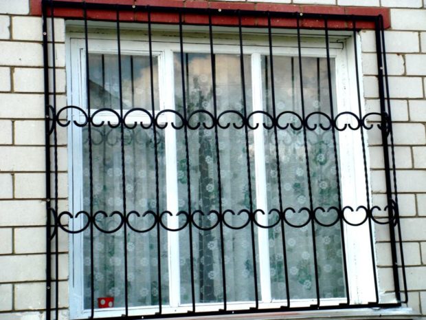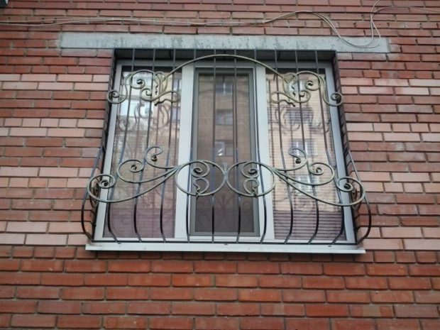 - grilles de sécurité et décoratives - C'est le type de conception le plus populaire. Ils protègent simultanément la maison et ne gâchent pas les ouvertures des fenêtres. Ils sont fabriqués à partir d'un profil carré de 8 * 8 mm, de bandes 16 * 4 mm, d'une tige d'un diamètre de 10 et 12 mm. Ces éléments peuvent être pliés et tordus, obtenant un motif intéressant. Pendant l'installation utiliser des renforts d'un diamètre d'au moins 12 mm, des plateaux extérieurs sont également installés;