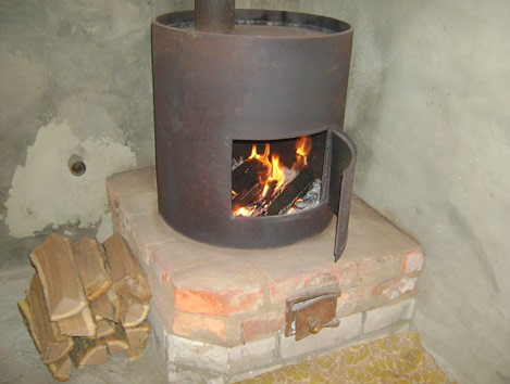 - un poêle à ventre peut être chauffé avec n'importe quel combustible solide, mais le bois de chauffage est généralement utilisé;