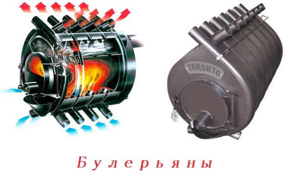 Souvent, le poêle Buleryan est confondu avec un poêle et un poêle à bois conventionnel. Elle a vraiment absorbé un peu des deux. Le principe de fonctionnement est la convection. La conception suppose la présence de tuyaux à la base du four et dans la partie supérieure. L'air froid entre par la partie inférieure du four, reçoit la chaleur de la chambre où le combustible est brûlé et sort déjà chauffé par la partie supérieure. Les tuyaux sont soudés aux 2/3 dans le corps du four pour maximiser le transfert de chaleur. La conception spéciale du four et de la cheminée vous permet de tirer le maximum de chaleur de la combustion du combustible. Un rôle important est joué ici par la présence d'une chambre de pyrolyse combustion du combustible. Les produits de combustion sont évacués par une cheminée.