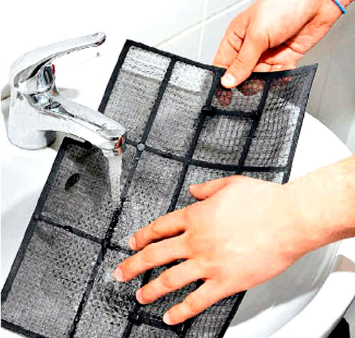 Si l'ordre idéal est maintenu à la maison, alors 1-2 fois par mois, il suffit de nettoyer à sec les filtres, c'est-à-dire enlever la poussière avec un aspirateur pendant le nettoyage. Avec une lourde charge sur le climatiseur, il est préférable de rincer les filtres quelques fois par mois - ce n'est pas du tout difficile.