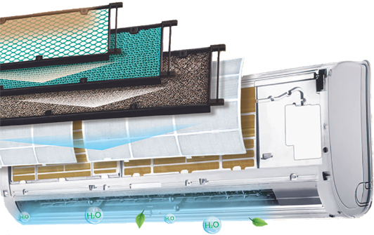 - filtre ultraviolet il tue les virus et les bactéries avec un certain spectre de lumière, empêche leur croissance et leur développement à l'intérieur du climatiseur, peut fonctionner indépendamment ou conjointement avec un filtre photocatalytique;