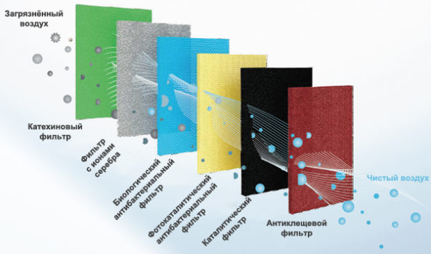 - filtre antibactérien vous permet de tuer la flore pathogène dans l'air. Il est fabriqué à base d'antiseptiques naturels;