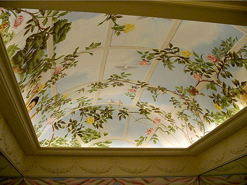 Lors du choix de peintures murales au plafond, faites également attention à la complexité de l'image, ou plutôt, si vous pouvez gérer le collage d'une image assez complexe.