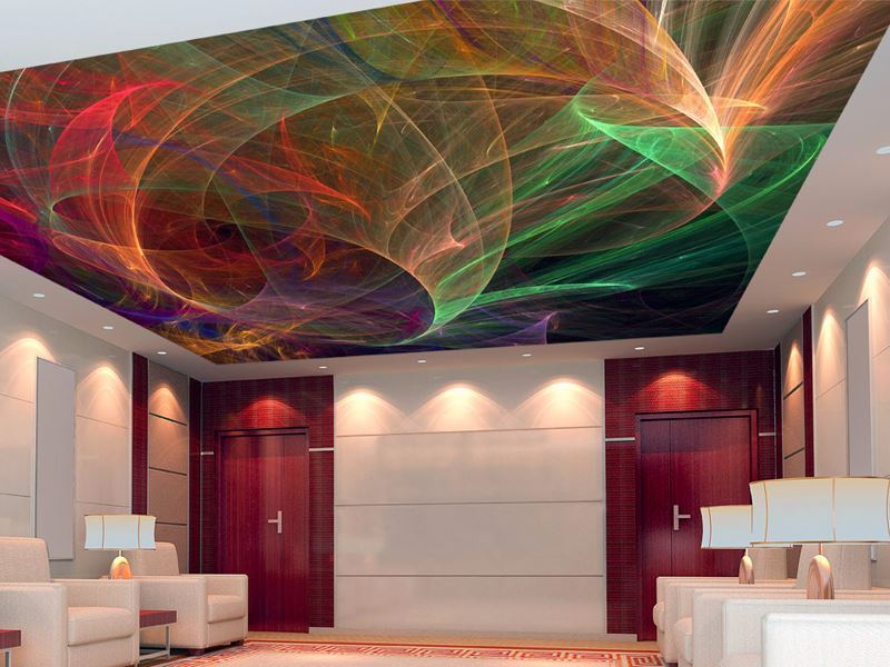 - abstraction s'intègre avec succès dans divers styles d'intérieur, mais semble mieux dans un style moderne. Les dessins abstraits tridimensionnels peuvent grandement affecter la perception de la pièce: avec un bon choix, le plafond augmentera visuellement, avec un mauvais choix, il peut appuyer, alors soyez prudent;
