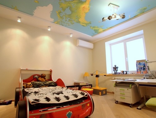 - cartes géographiques. Il peut s'agir de cartes de pays, de villes, d'une carte du monde ou même d'une carte d'une île inexistante avec une marque de l'emplacement des trésors. Une bonne option pour les chambres d'enfants - l'imagination du bébé se développera lors de l'étude de telles images;
