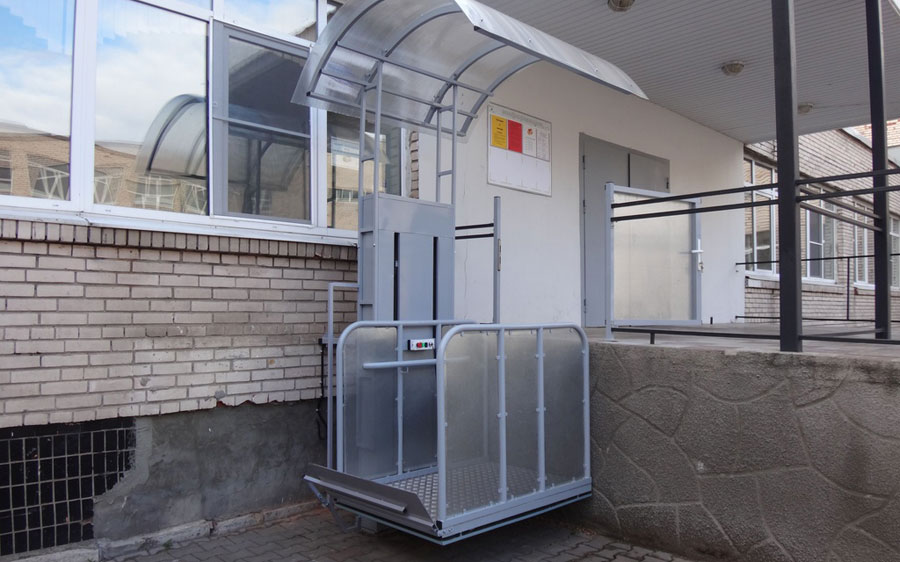 Si l'emplacement du bâtiment ne permet pas d'installer l'ascenseur, une installation dans un endroit accessible aux personnes handicapées est requise aidez les boutons d'appel. Après avoir appuyé sur un bouton, un spécialiste devrait sortir et aider une personne en fauteuil roulant à monter les escaliers. Le bouton doit être installé en l'absence d'échelle, si une porte battante est utilisée, ce qui est extrêmement difficile à ouvrir sur la poussette.