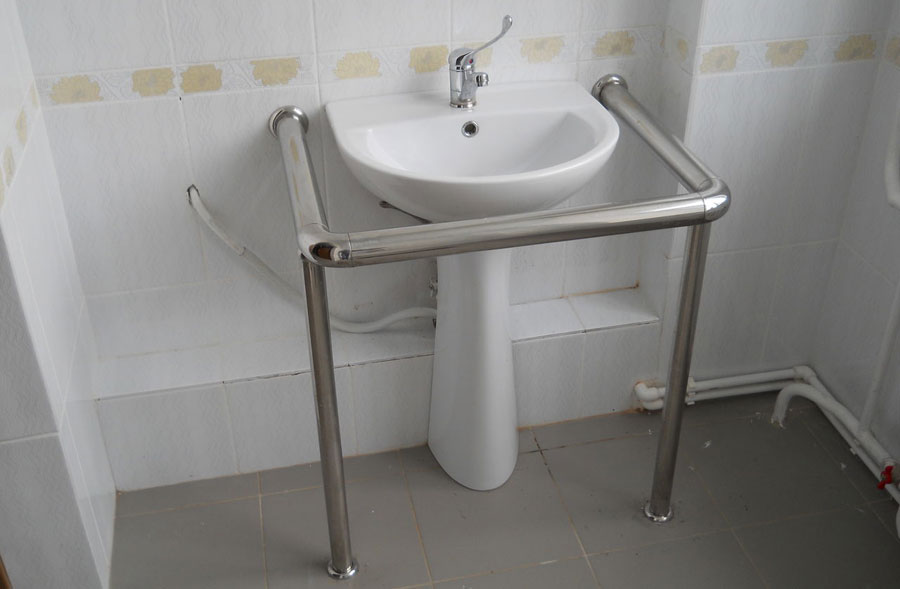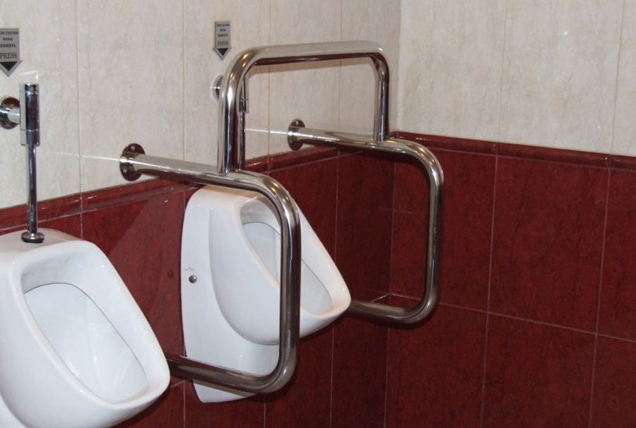 - Urinoir. S'il y a des urinoirs dans la salle de bain, au moins un devrait avoir des mains courantes pour aider les personnes affaiblies à garder leur équilibre. L'option recommandée est une construction monobloc avec fixation au mur et au sol, mais un montage au mur uniquement en plusieurs points est également acceptable.