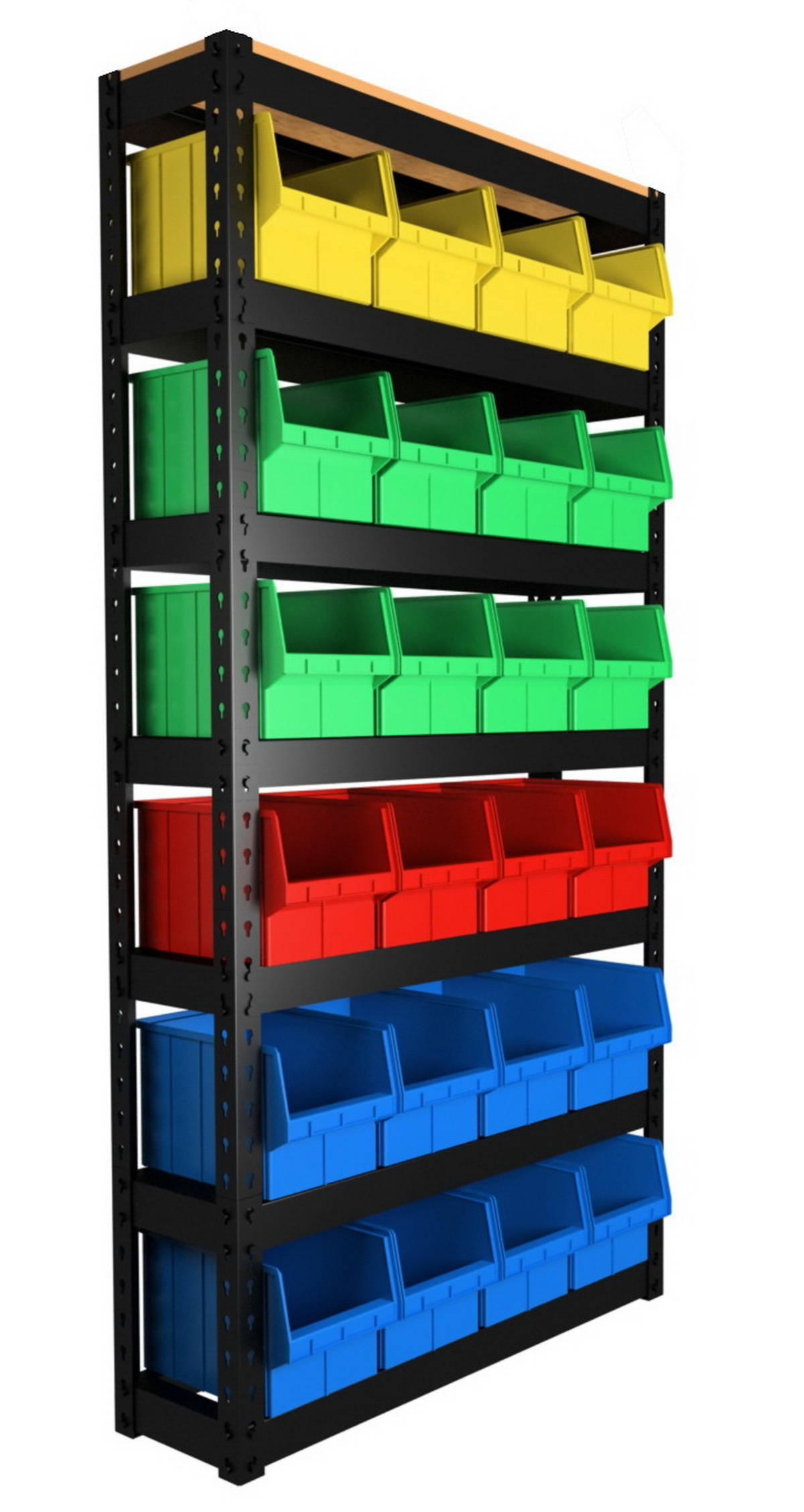 - plastique il est utilisé extrêmement rarement et la raison est claire - incapacité à supporter des charges plus ou moins élevées. Aujourd'hui, il y a des supports pour le matériel en vente, leur cadre est en métal et les boîtes sont en plastique. Les boîtes sont divisées en compartiments, de sorte qu'elles peuvent stocker des dizaines de types de diverses attaches. Une option pratique pour l'atelier, mais dans un garage ordinaire, il est peu probable qu'il y ait autant de matériel différent pour remplir même un petit rack.