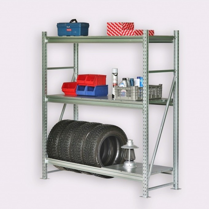 - support fixe fixé au sol, aux murs ou au plafond, il est donc considéré comme le plus fiable et le plus durable. Il se compose de supports verticaux, de cloisons horizontales et d'étagères. Les étagères peuvent être en métal ou en bois. Si prévu par la conception, les étagères peuvent être réorganisées, changeant le volume des sections de stockage. Si nécessaire, certaines étagères peuvent être supprimées, créant ainsi un endroit pour stocker les pneus. Pour ceux qui vont ranger quelque chose d'assez lourd, ce type de rayonnage est le mieux adapté. En règle générale, les modèles sont en métal, mais les étagères dans certains cas peuvent être en bois;