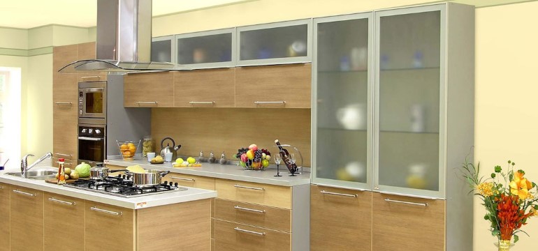 En règle générale, les inserts en verre dans les façades sont assez faciles à bien laver pour leur redonner leur aspect idéal d'origine. Et si vous voulez quelque chose de nouveau? Vous pouvez remplacer le verre transparent existant par du verre dépoli ou coloré, puis la cuisine changera sensiblement. Certes, les verres devront être fabriqués sur commande, et tout le monde ne peut pas gérer le remplacement lui-même.