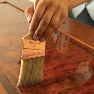 L'option fera l'affaire uniquement pour les façades en bois massif. Le vernis vous permet de protéger de manière fiable le bois et ne cache pas en même temps son aspect naturel chic. En ce qui concerne les meubles, la nitrocellulose, l'alkyde-urée, le polyuréthane, l'époxy et le polyester sont utilisés. vernis. Il est important que le vernis protège le bois de l'humidité et des températures élevées. Les vernis diffèrent par une odeur peu agréable, il est donc préférable d'effectuer tous les travaux dans la rue. Si cela n'est pas possible, il est préférable de prendre un matériau à base d'eau, il est presque inodore.