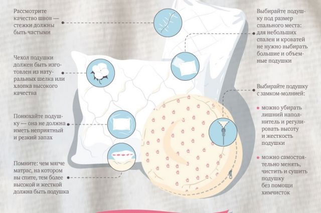 - préférence pour les oreillers avec une housse avec fermeture éclair. Une charge supplémentaire peut être retirée, leur entretien est plus facile;