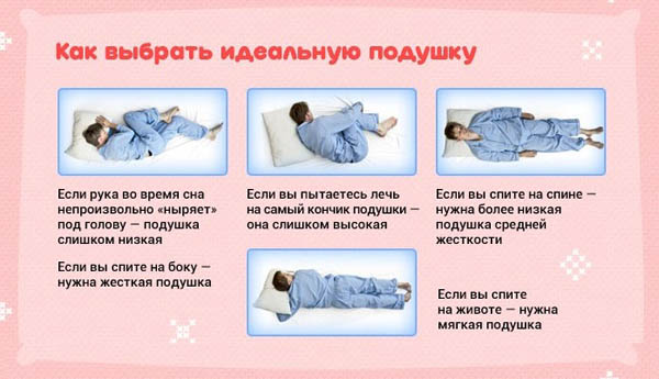 - avec une pression artérielle basse, il est préférable de choisir des oreillers plus mous et vice versa;