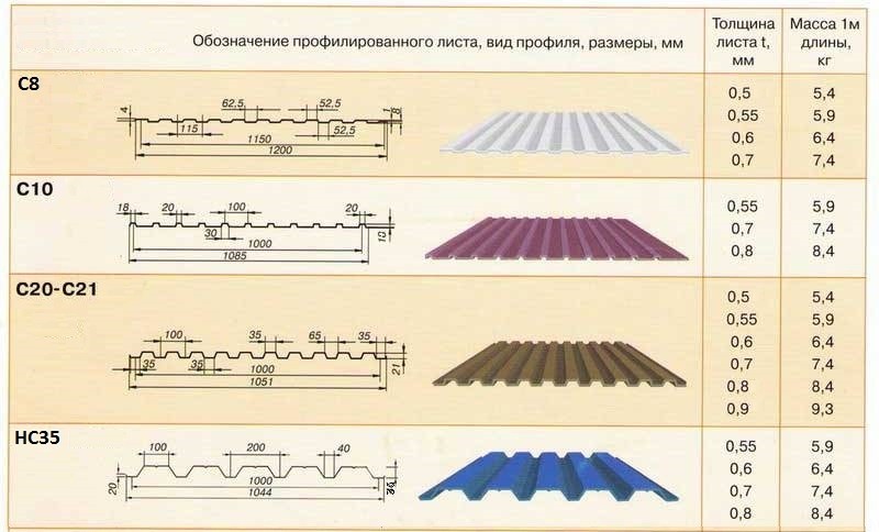 - hauteur des vagues affecte la résistance de la feuille, et plus la hauteur est élevée, plus la résistance est élevée. Ce paramètre est indiqué dans le marquage, par exemple, C8 est un profil de mur avec une hauteur de vague de 8 mm;