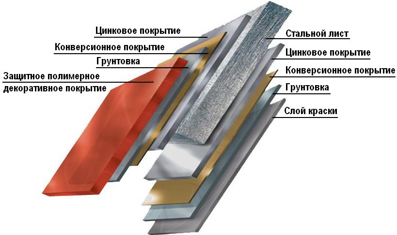 - application revêtement polymère d'une épaisseur de 25-200 microns. En règle générale, la protection polymère est appliquée uniquement sur la face avant de la feuille et le dos est recouvert d'une couche de vernis, mais dans certains cas, les deux côtés sont protégés. Ces feuilles sont généralement utilisées pour organiser des clôtures afin de lui conférer de hautes qualités décoratives;