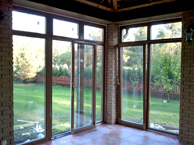 Le système se caractérise par une résistance et une stabilité élevées, il vous permet d'installer des cadres assez massifs de 200 * 300 cm.Moins de ce type de fenêtres - toute l'ouverture ne peut pas être complètement libérée des cadres, car un vantail est caché derrière un autre. Cependant, ce type particulier de construction est souvent utilisé dans les maisons privées pour clôturer les terrasses et les vérandas, pour vitrer le salon. Le système conserve une excellente visibilité et devient une barrière fiable contre le froid. Le seuil, en règle générale, est rendu bas, presque imperceptible, car la frontière entre la rue et la maison semble effacée.