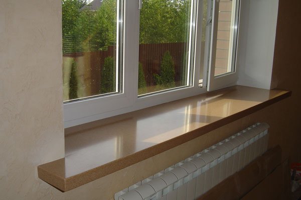 - la pierre artificielle est plus chère que le plastique, les carreaux de céramique, le bois et de nombreux autres matériaux utilisés pour organiser le rebord de la fenêtre. Mais l'apparence est complètement différente;