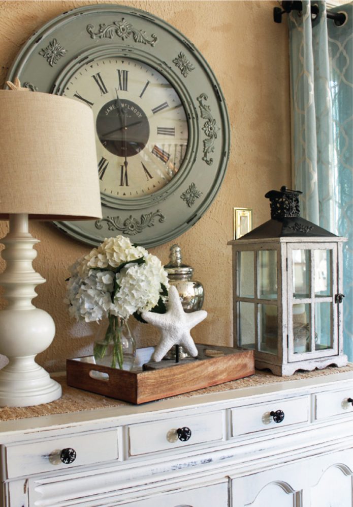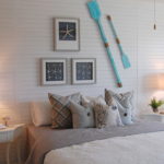 - peinture blanche ou plâtre. Ces murs constitueront une excellente toile de fond pour les peintures, les ancres, les autre décor. L'un des murs peut être accentué et peint en bleu;