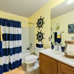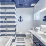- la salle de bain - Une autre pièce où le style marin se manifeste dans toute sa splendeur. Gamme blanc-bleu, tuiles représentant la vie marine, un peu de décoration - et le bain, même en hiver, vous rappellera vos vacances;