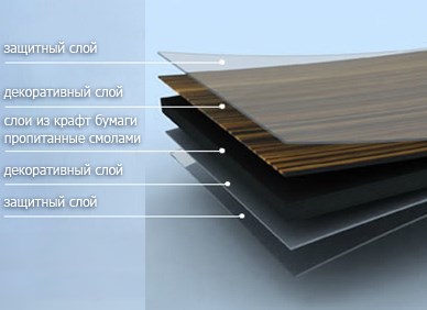Commençons un peu à distance pour bien comprendre le problème et éviter toute confusion. Qu'est-ce que stratifié ordinaire (celui que beaucoup de gens ont dans les appartements)? Il s'agit d'un matériau multicouche, basé sur lui - panneau de fibres à haute densité, qui est fabriqué à partir de fibres de bois. Sous le panneau de fibres - une couche stabilisatrice qui protège le matériau de la déformation. De plus, une couche de matériau d'insonorisation peut être utilisée. Au-dessus du panneau de particules - papier avec un motif imprimé (imitation de pierre, bois, carrelage, cuir, etc.). Une couche protectrice de mélamine ou de résine acrylique est appliquée sur le papier. Le fabricant peut réaliser la couche de protection en relief pour assurer une similitude maximale entre le stratifié et le bois naturel.