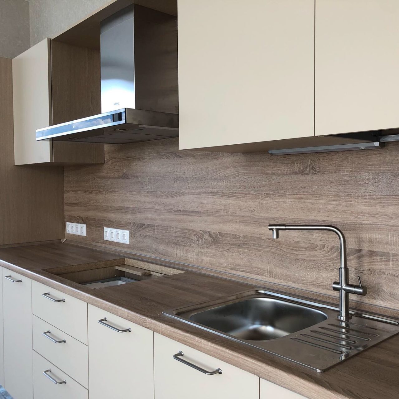 Vous pouvez ajouter un comptoir en stratifié façades de cuisinefait du même matériau et avec le même décor. Naturellement, un matériau plus mince est utile à ces fins - une épaisseur d'environ 11 mm suffira.