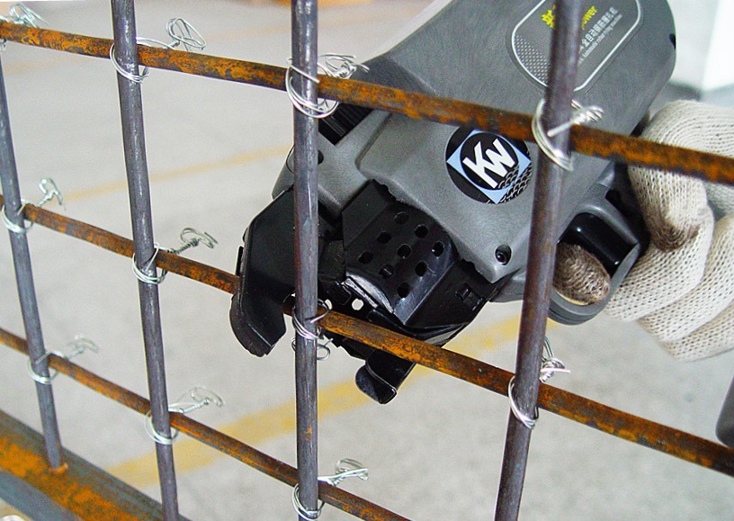 Le processus de tricotage peut être simplifié avec un pistolet à tricoter spécial. Il est appuyé contre l'intersection de barres d'acier, a appuyé sur la détente - et la connexion est prête. Jusqu'à 40 à 50 opérations de ce type peuvent être effectuées par minute. Moins - le prix élevé de l'équipement et la nécessité d'utiliser un fil coûteux.