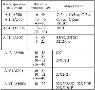 - la lettre C indique la possibilité de fixer les tiges dans le cadre par soudage (exemples - A400C, A500C, A600C). La classe d'armature A500C est récemment devenue particulièrement populaire;