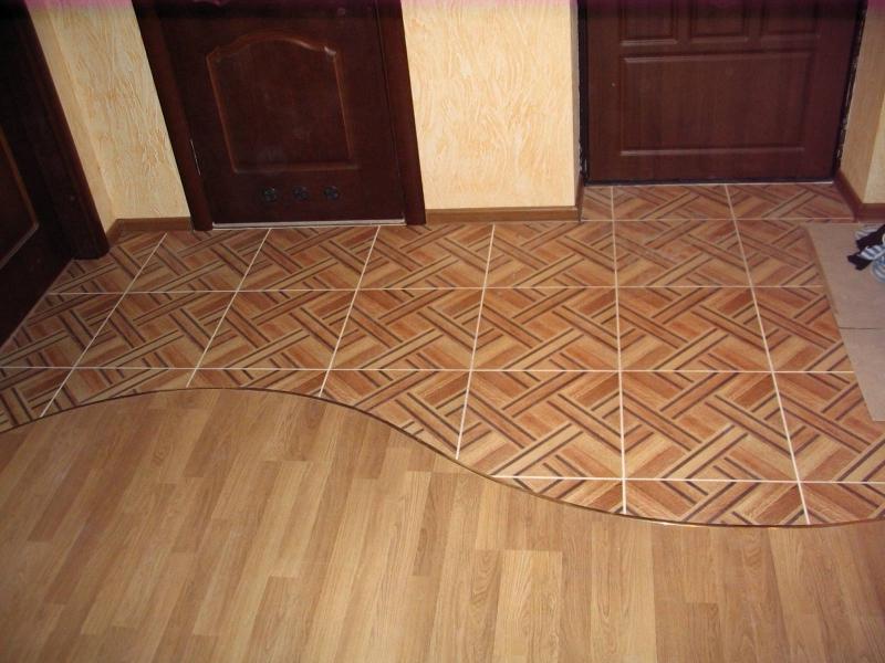 - Fonctionnalité. Il est préférable de disposer des zones de la pièce où l'eau peut souvent couler. carrelé - dans ces conditions, il servira nettement plus que revêtement de sol stratifié. Ce dernier semble plus confortable et conviendra dans les zones plus sèches.