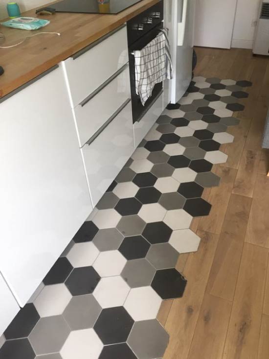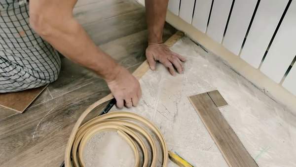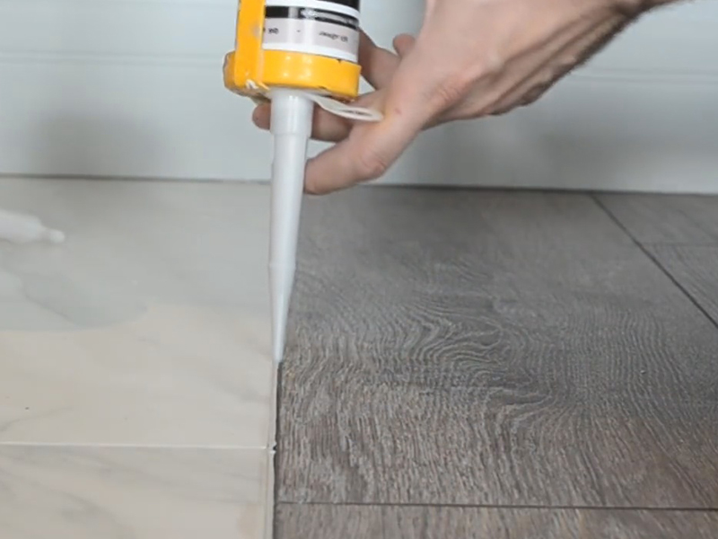 - Le stratifié peut se détériorer lorsqu'il est exposé à l'humidité, il est donc préférable de poser le carrelage en premier, de laisser l'adhésif sécher, puis installation de stratifié traiter qualitativement le joint avec du mastic.