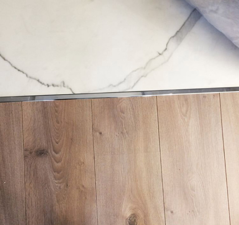 - Pour obtenir la même hauteur des deux revêtements, une erreur de 1 à 2 mm est autorisée. La pose se fait en raison de l'épaisseur différente de la chape. N'oubliez pas de considérer l'épaisseur de la couche adhésive. Pour obtenir le résultat parfait, vous devez effectuer un calcul compétent.
